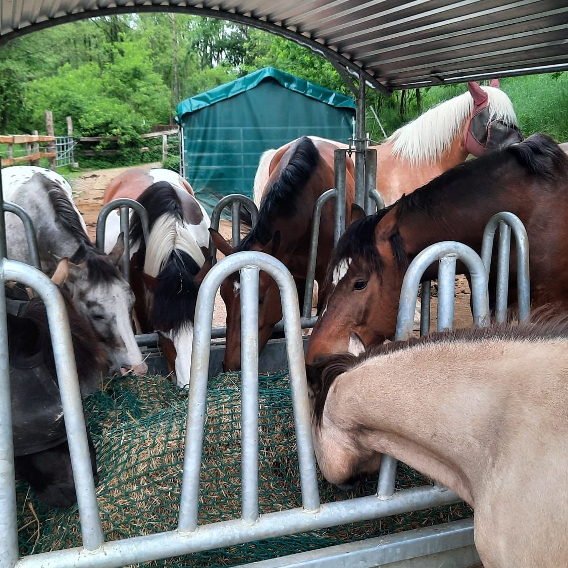 In unserem Offen- und Laufsstall können Pferde ganzjährig mit Heu aus eigener Produktion und Futterstroh gefüttert werden. Es gibt verschiedene Futterplätze in dem großen Weidezelt, in einer separaten Heuraufe und in der großen mittig platzierten Futterraufe in unserem Laufstall. Auch Tränken sind am Paddock und im Laufstall vorhanden. Zur Weidesaison werden 3,6 ha Weideland sowie 1,8 ha Heuweide zusätzlich zur Verfügung gestellt